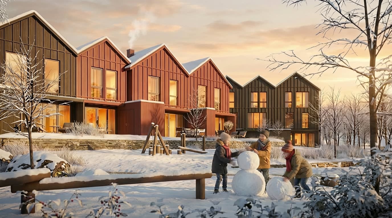 Rekkehusene på Bo Brøset gir deg det beste av begge verdener - med moderne komfort og smarte løsninger som gjør hverdagen litt enklere. Her får du flere etasjer å boltre deg på, egen hageflekk til kaffe og sandkasse, og god plass til både hverdagskaos og rolige kvelder.